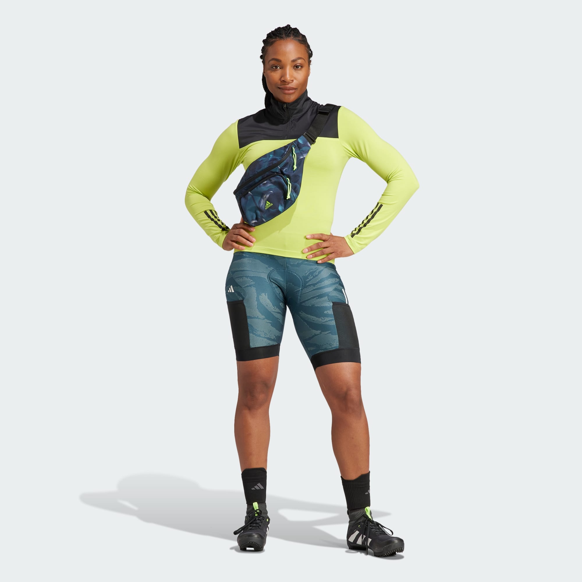 Material and graphic concept for a unisex adidas engineered cycling bib designed with the gravel cyclist in mind, utility, and function.