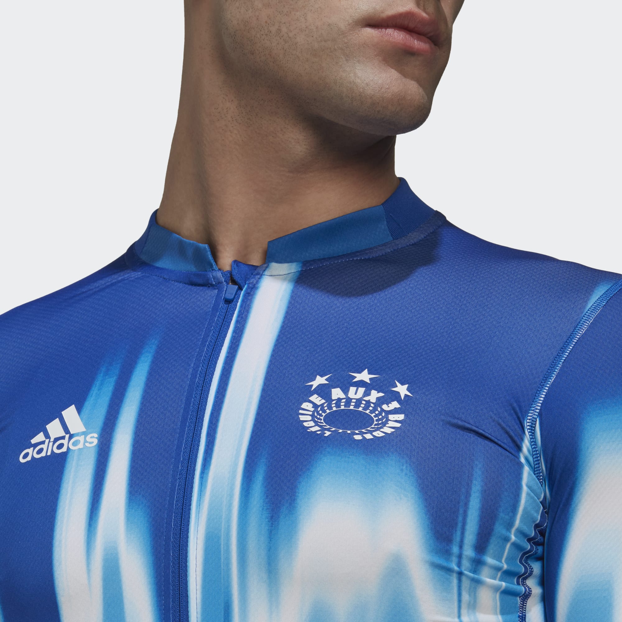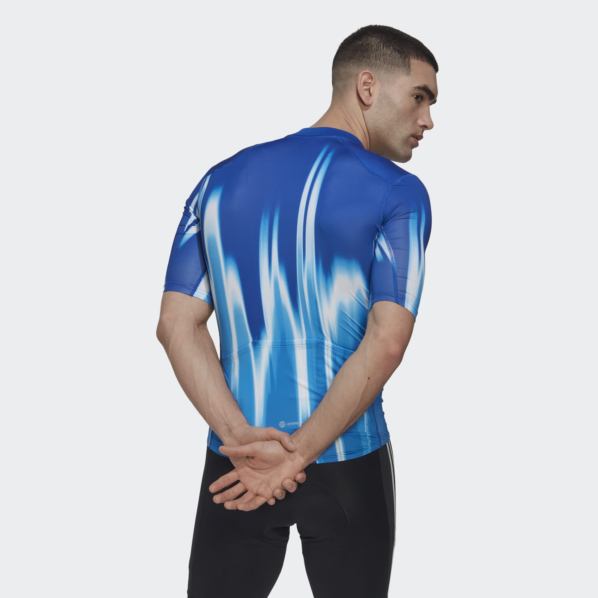 To appropriate the language over to the sport of cycling however, the graphic is a direct nod to a multi-faceted look into “motion” within the sport of cycling. The blur of the graphic references the speed of the sport while the graph based look gives insight into modern day cycling apps and how motion, cadence, and speed data is visualized. Lastly, the placement of the aesthetic on the garment is a visual queue to the relationship between the environment one rides upon and how the motion of the wheels can aesthetically adorn the back of ones jersey with elements like rain and mud from the tarmac.