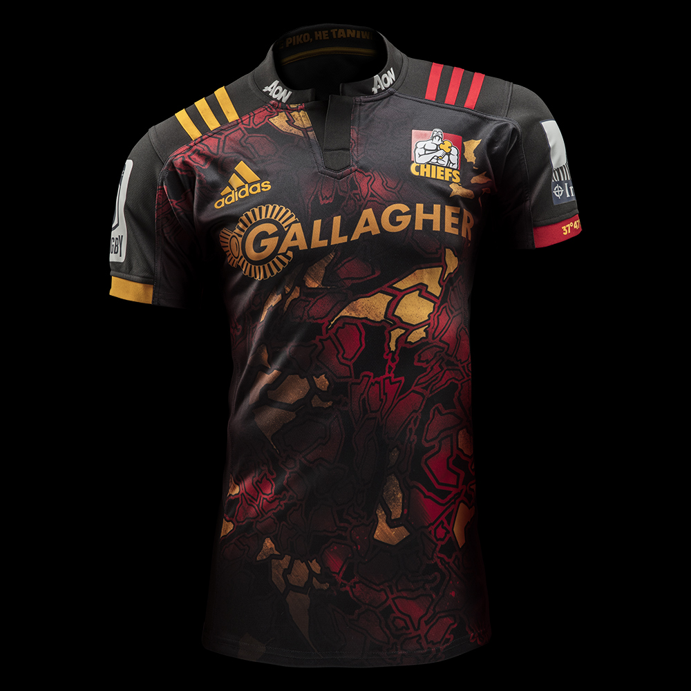 Due to the British & Irish Lions team playing on the home turf of New Zealand, the concept was created to develop a camo based upon the idea of defending ones territory or “catchment.” Therefore, each individual jersey camo is designed using the specific catchment territories from each of the clubs regions. On top, each kit displays the latitude and longitude of the clubs home stadium or the “ground they will defend.”